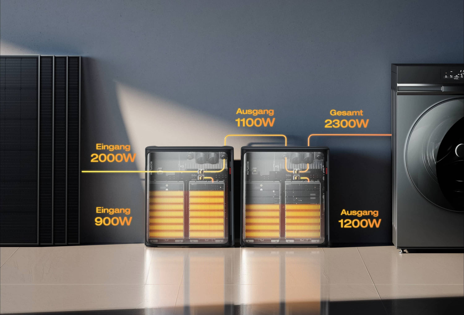 - Flexible PV-Anbindung: 4 MPPTs und 2.000 W PV-Eingangsleistung (4 Ă— 500 W)