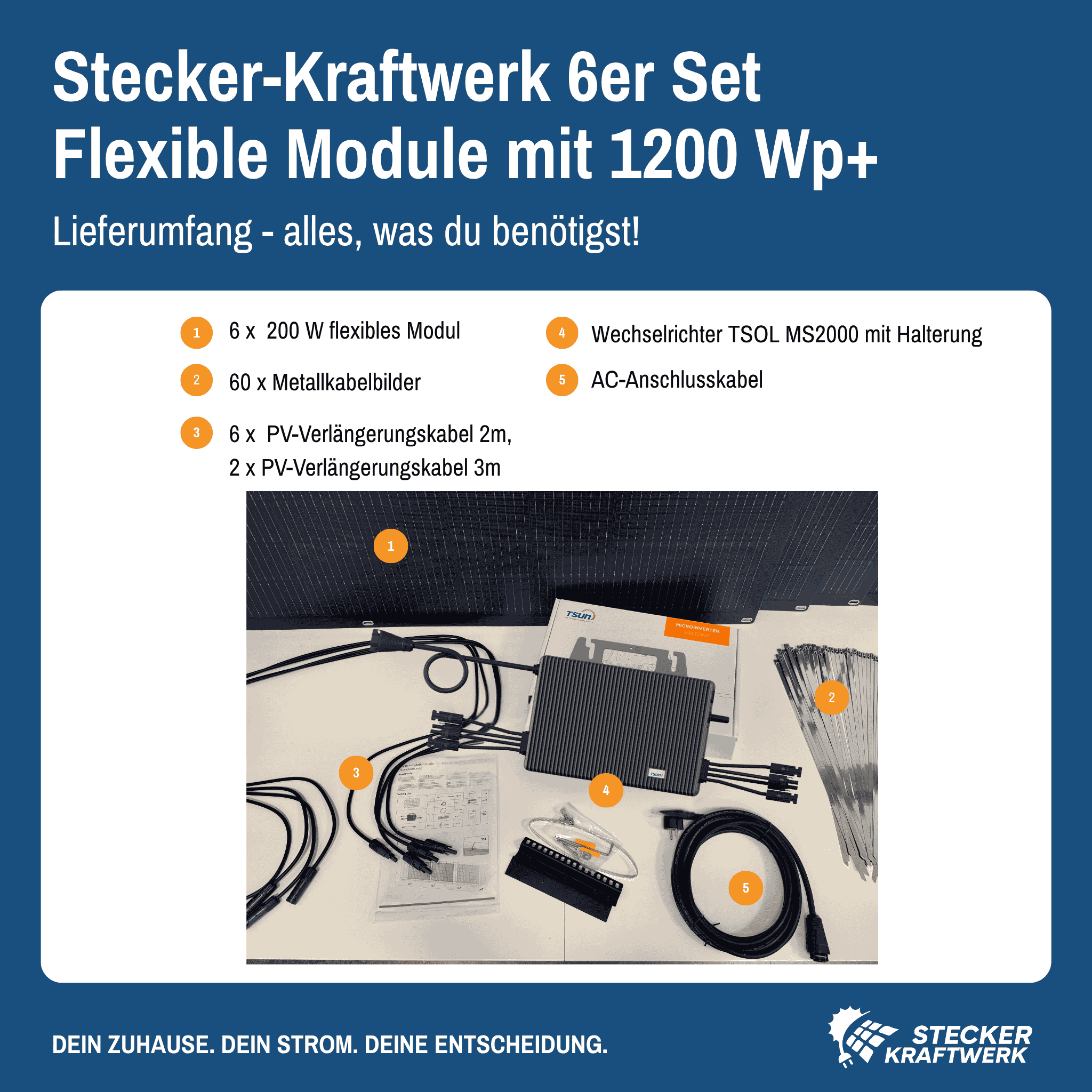 Stecker-Kraftwerk 6er Set Flexible Module mit 1200Wp+