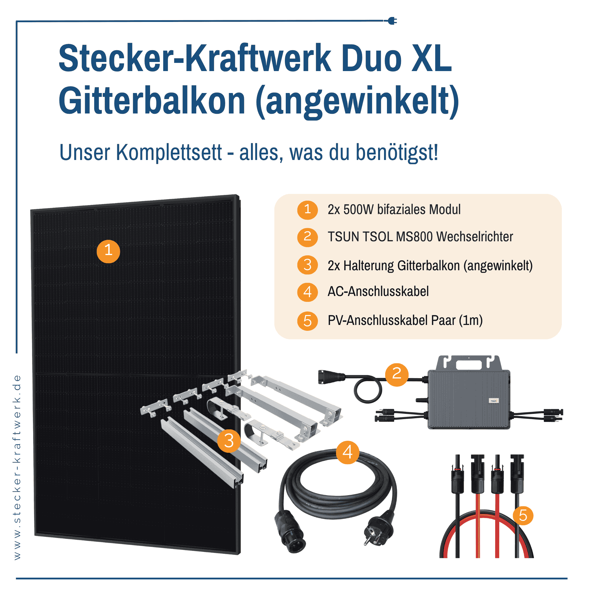Stecker-Kraftwerk Single für Gitterbalkon XL mit 500Wp+